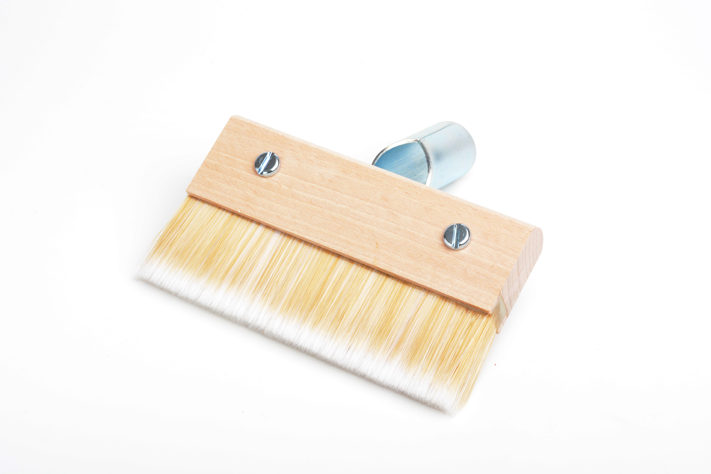 Fussbodenstreichbürste/Flächenstreichpinsel 15 cm breit, Besatz mit robuster Kunstfasermischung, Holzkörper, verzinkter Halter (seitlich für Stiel). Ideal für Erstbeschichtung und Renovierung / Auffrischung von z. B. verlegten Terrassendielen.