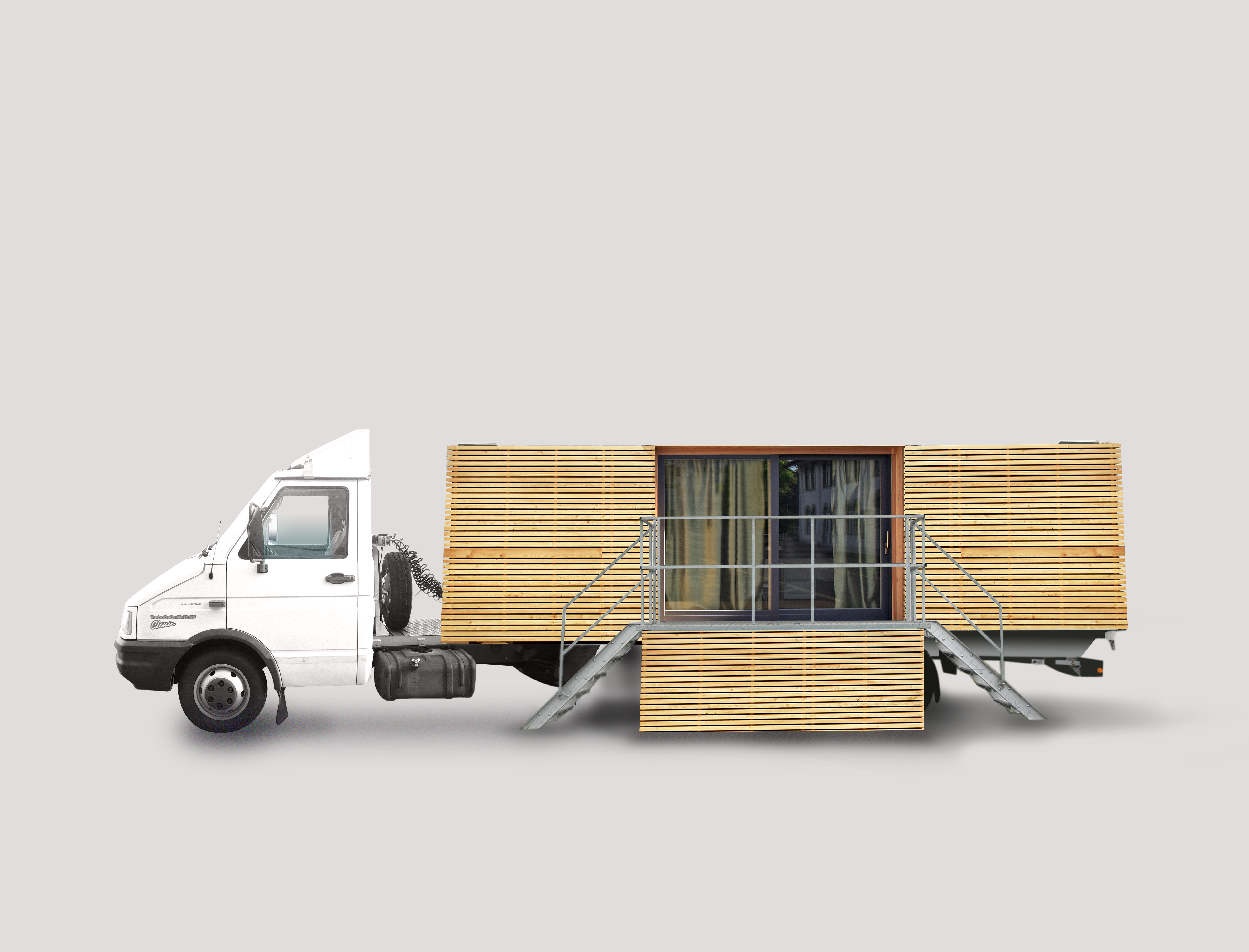 Diese mobile Wohn-Einheit kann ohne Baubewilligung platziert werden. Der Grundkörper besteht aus Kunstoff mit einer 5cm Isolation. Die Fassade kann als Holzfassade in den verschiedensten Varianten wie z.B. mit Romboid-Panels ausgestattet werden. Oder aber der Situation angepasst, mit Folie beklebt werden. So kann die Wohn-Einheit Komplett in praktisch unsichtbar in die Umwelt integrieret werden. Der Innen-Ausbau kann nach Wunsch erfolgen. Die Wohn-Einheit ist bereits für einen Schwedenofen vorbereitet und somit Winterfest.