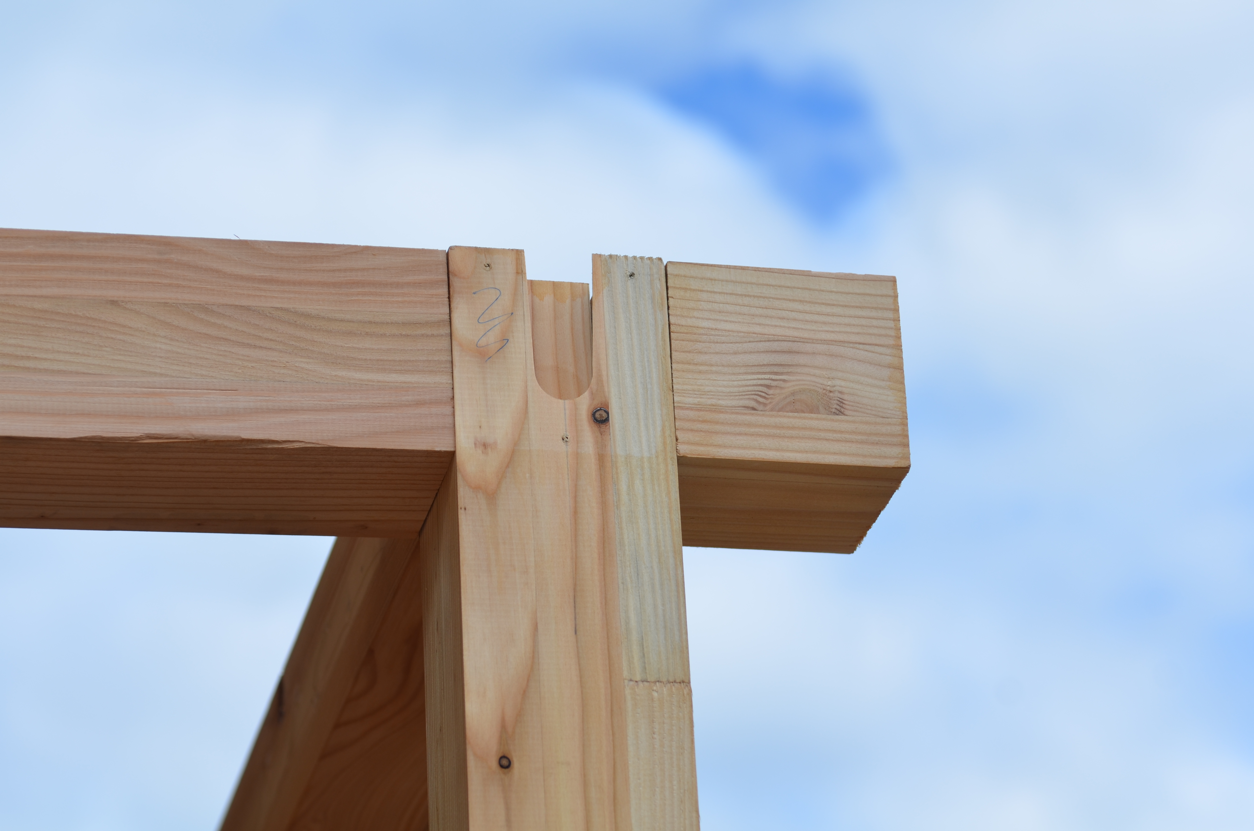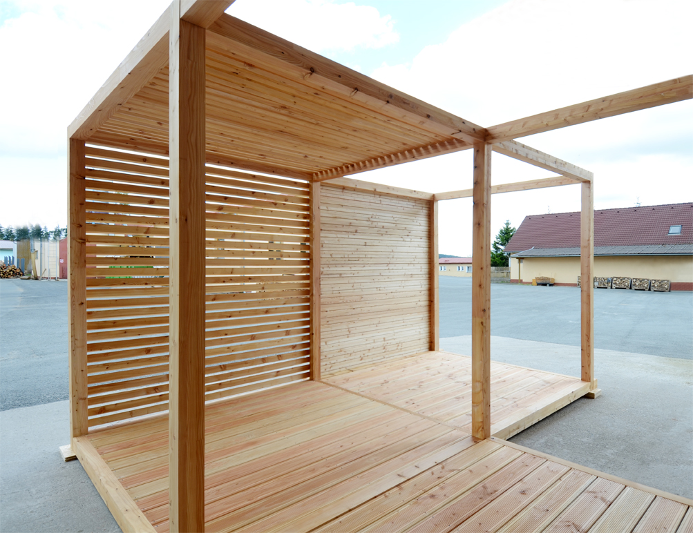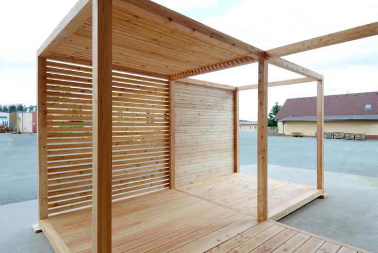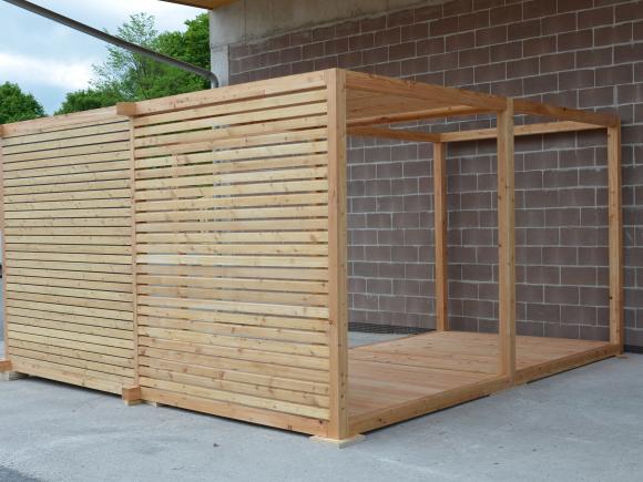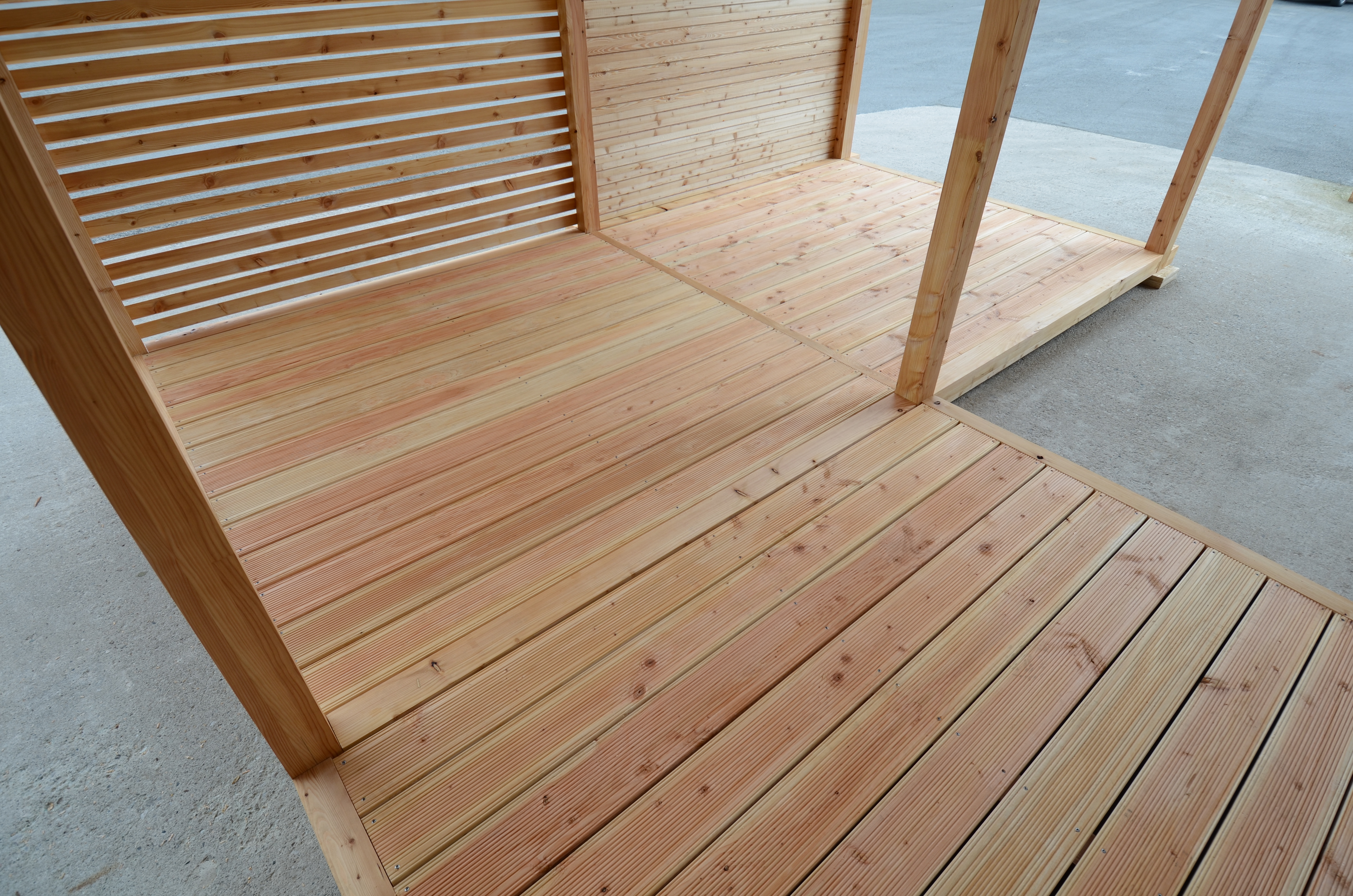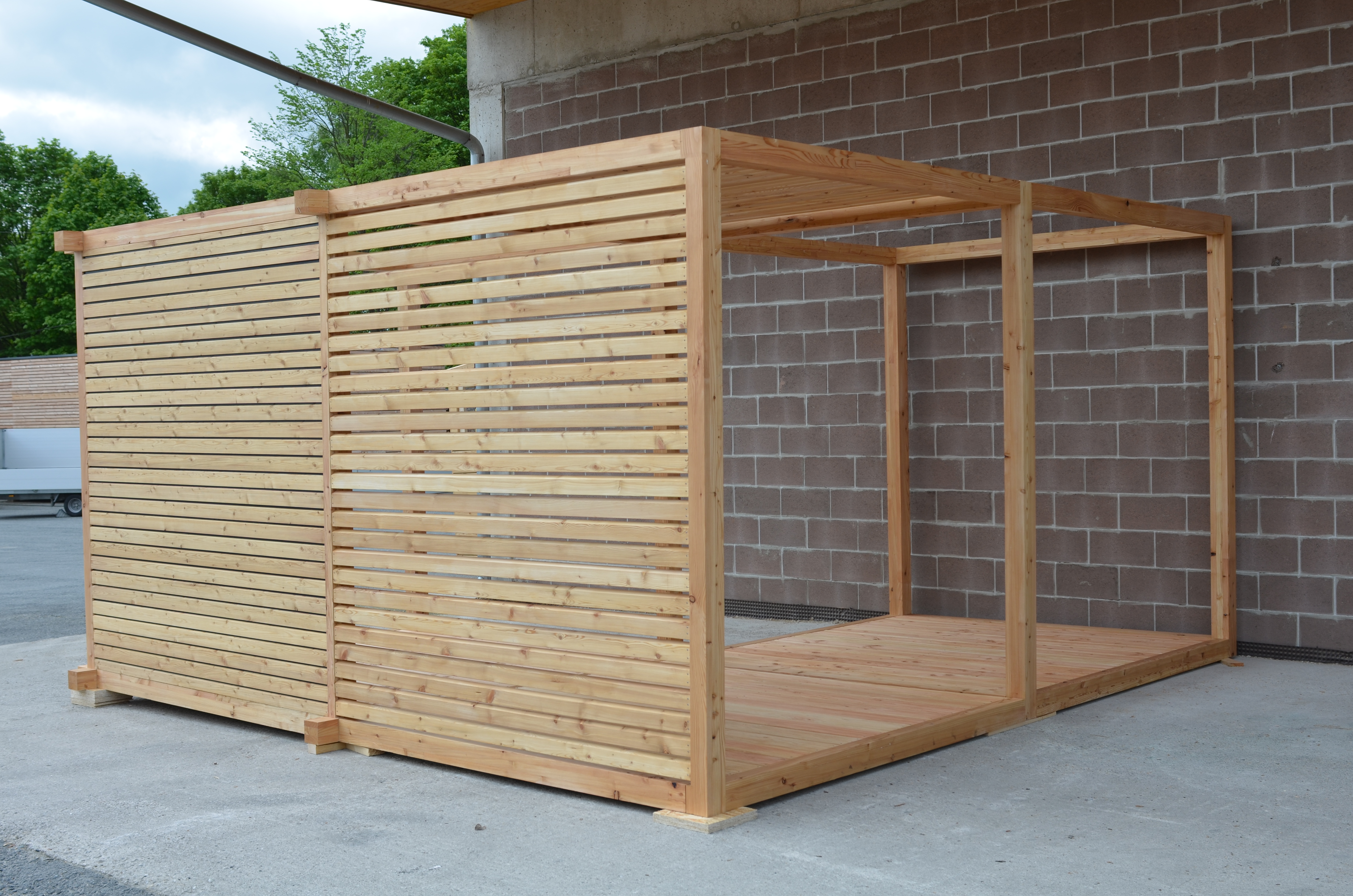 Die einzelnen Komponenten aus nordischer Lärche können dank einem in der Schweiz entwickelten Verbindungssystem kombiniert werden.
