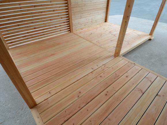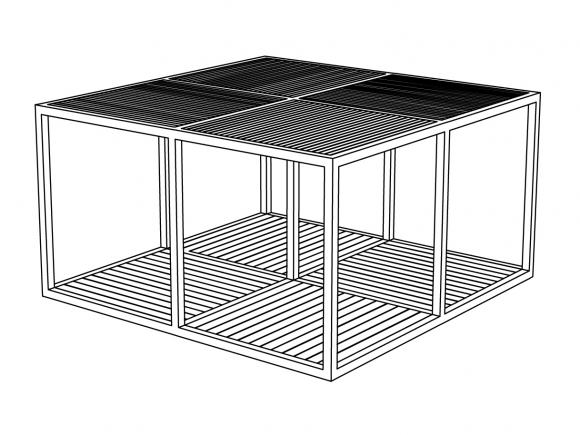 Die Pergola im Baukastensystem. Das Grundelement misst 2 x 2m und kann im Element-System ausgebaut werden. D.h. dass Sie ein Grundelement von 2 x 2m mit weiteren Elementen von 2 x 2m ergänzen können.